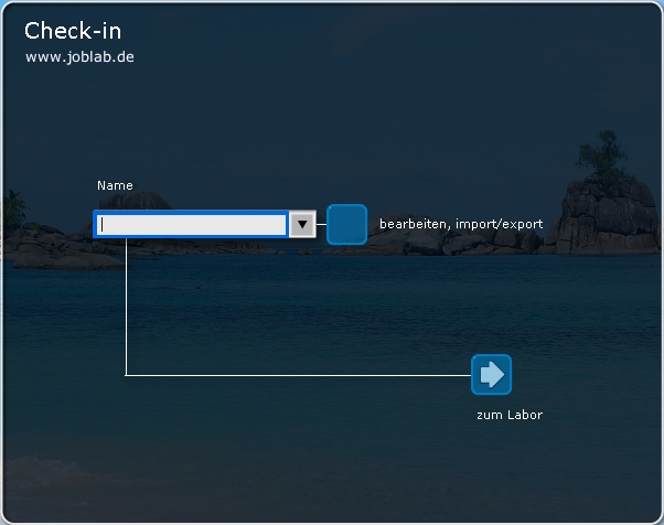 Jederzeit kann man aus dem Labor mit dem Button “Check-in” wieder in den Anmeldungsraum gelangen, um eine andere oder neue Identität anzunehmen.