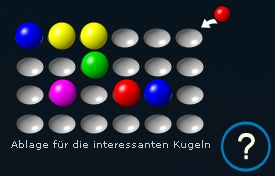in den jeweiligen bunten Kugeln. Die Farben sind verschiedenen Branchen zugeordnet. Die Kugeln können hin und her gerollt werden, um so die anderen Kugeln zu erreichen. Ihre Anordnung